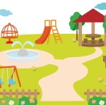 広い公園です。休日なのでたくさんの人が公園を利用しています。